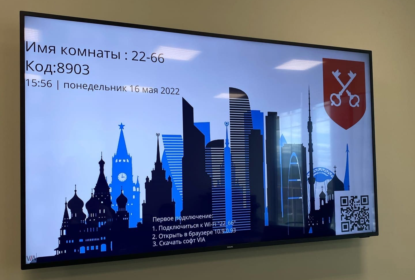 Внедрили интерактивную систему Kramer Via Go² для проведения совещаний «без бумаг». Ее особенности — универсальность и широкие возможности. Она позволяет выводить информацию одновременно с двух пользовательских устройств на один экран. К ней могут подключиться 254 пользователя с любого персонального устройства — будь то платформы Apple и Android или Windows. Для этого не требуется привлекать технических специалистов — нужна лишь локальная сеть.